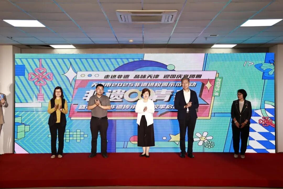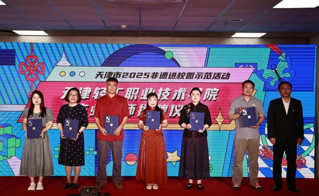 9月25日上午,由天津市文化和旅游局主办,天津广播电视台和新利18平台共同承办的“天津市2025非遗进校园示范活动暨2026非遗传承夜高校季启动仪式”在我院产教研创大楼举行。此次活动以“走进非遗,品味天津,迎国庆享团圆”为主题,集结15个上合峰会礼物、21个非遗传承体验基地、16位国家级非遗传承人及近百个非遗项目(传承人),通过“展览、授牌、研讨、共创”多维联动,开启天津非遗与职业教育深度融合的新篇章。出席此次活动的领导有天津市文化和旅游局副局长李茁,天津渤海轻工投资集团有限公司党委书记、董事长张世新,市教育委员会学生思想教育与管理处处长杨明,天津市文化和旅游局非遗处处长宗成灵,天津市津南区海棠街道纪工委书记张艳阳,学院党委副书记、院长李云梅,天津市非遗保护中心主任邢晓阳,学院党委副书记、副院长李子铮,天津广播电视台文艺频道副总监彭靖,学院党委委员、纪委书记刘利超,学院党委委员、副院长刘悦凌等,全市16个区文旅局代表、非遗领域专家学者及师生代表齐聚一堂,共同见证这一非遗传承与发展的重要时刻。