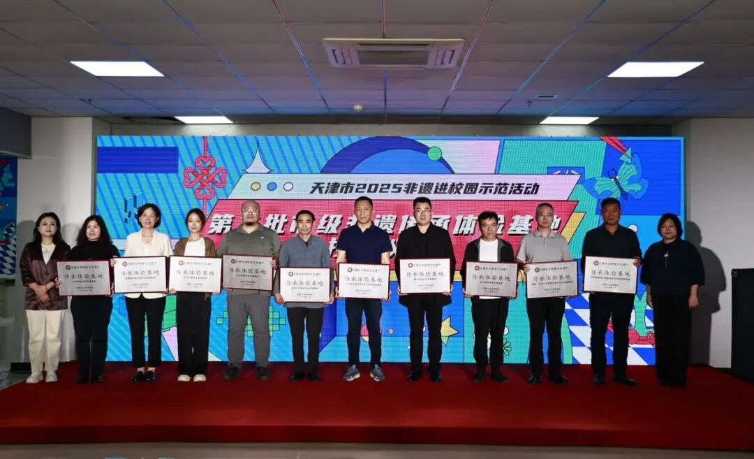 活动第二项议程,天津市文化和旅游局非遗处处长宗成灵、天津市非遗保护中心主任邢晓阳为21个市级非物质文化遗产传承体验基地代表授牌。希望他们能够继续发挥模范带头作用,积极开展传承活动,精心培养后继人才,切实做好非物质文化遗产的保护传承工作。