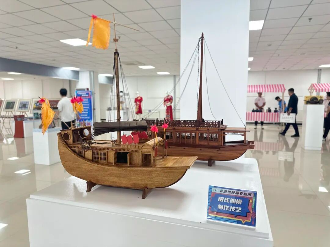 田氏船模制作技艺,是中国古代木船的缩小模型,起源于大运河繁荣昌盛时期。田氏船模有百年以上历史,从1867年田继勇到田星、田起元、田恩祥,至今的田霞传承第五代。田氏祖上以养船为业,冬季河面休业,就制作小的木船供孩子玩耍,慢慢发展成现在制作古代渔船,游览船,对槽船,官船的田氏船模。田氏船模不同于其他船模,它全部为仿真缩小比例的船模,至今船上的零部件,船体龙骨,和排船制作依然保留真船的制作工序。2014年协助拍摄中国大运河申请世界非物质文化遗产,制作了古代对槽船,又一次以不同的方式展现了古代大运河繁荣昌盛的景象。