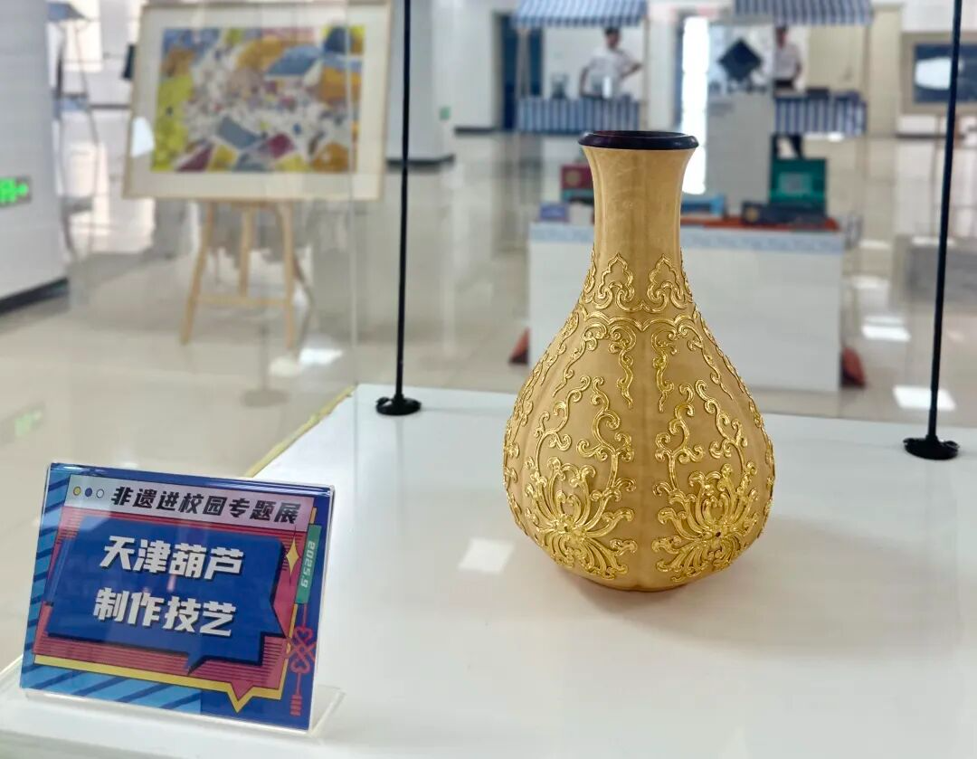 国家级非遗天津葫芦制作技艺起源于清光绪年间,至今五代传承。制作技艺包括范制、醒模、烙制、彩绘、堆金等工艺。范制葫芦也叫匏器,需要36道工序。由于看不见葫芦在模具中的生长过程,所以成功率极低,这形成了天津独有的一门绝技。葫芦庐从非遗传承上寻突破,从运行体制上求发展,建立了葫芦庐艺术馆、博物馆、世界葫芦种子库等。并与国内多所大学产学研联合,将葫芦制作技艺融入专业课程优化课程体系建设,打造国内首个国家级非遗与专业大学融合的非遗研发中心,培养学生葫芦制作技艺和营销能力。通过师带徒的教学形式,在传承非遗技艺的同时,培育学生的创新意识,培养出更多高素质技术技能人才、能工巧匠、大国工匠。