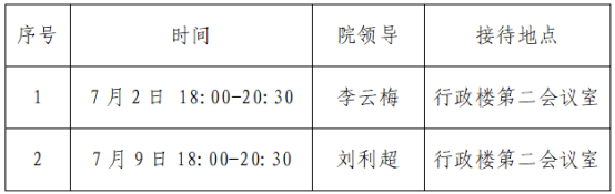 根据学院《院领导接待日管理办法》,现将2024年7月院领导接待日安排通知如下:
