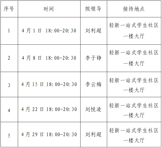 根据学院《院领导接待日管理办法》,现将2025年4月院领导接待日安排通知如下: