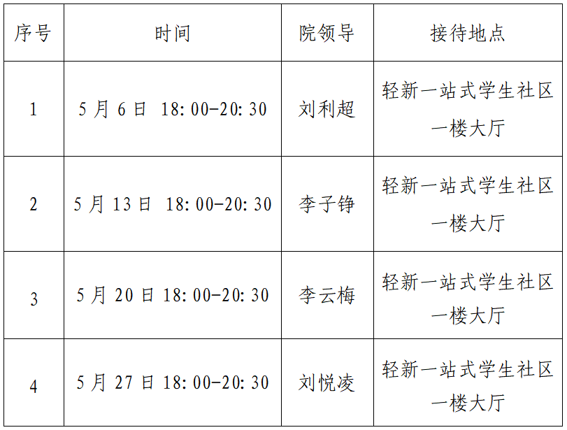 根据学院《院领导接待日管理办法》,现将2025年5月院领导接待日安排通知如下: