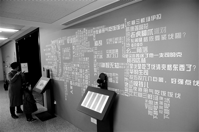 观众在上海市历史博物馆“沪语”墙边听上海方言。 视觉中国 供图 |