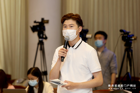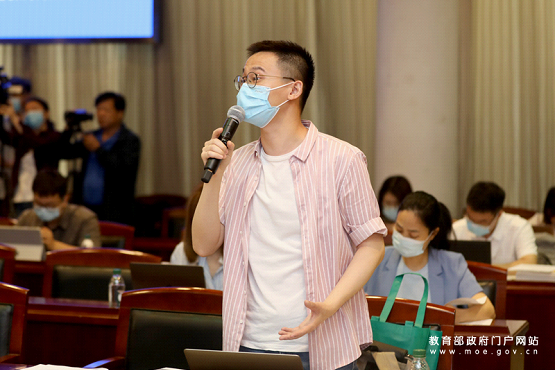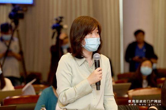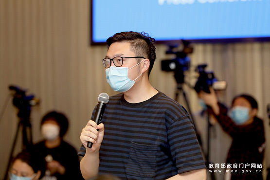 中国日报记者提问。(中国教育报记者 单艺伟/摄)